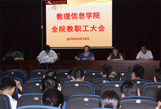 史正东副书记回顾暑期疗休养和招生就业等工作。就业工作虽然任务重、难度大,但在广大教职工共同努力下,取得了理想的成绩。招生情况同比往年大有好转,一志愿率大幅提高。本学期要继续做好学生团队导师制。要求班主任关注学生报到,做好安全教育,加强学业指导,抓好学风建设等。他最后强调,开学初学校启动“两学一做”和“党委履行主体责任”的督查工作,要求党员同志提前做好准备。