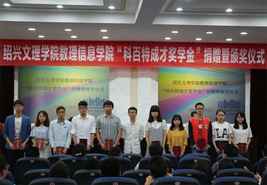 关于表彰第一届“科百特成才奖学金”获得者的决定》。微电子121班余瑞容荣获一等奖,微电子121班朱顺威、数学122班胡长财、电信121班钟秀秀荣获二等奖、电信121班汪莹莹、数学122班徐明俊、物理121班李胜、数学122班陈炜红、电信121班胡嘉成、电信122班项倩红荣获三等奖。卢红星先生为获奖同学一一颁奖,并和大家合影留念。