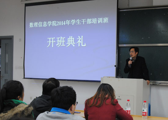 2014年学生干部培训班开班典礼在综合楼A207隆重举行,开班典礼由学生科副科长邱科强老师主持,院党委副书记史正东作开班动员讲话,分团委学生会全体学生干部及各班级主要学生干部参与本次培训。