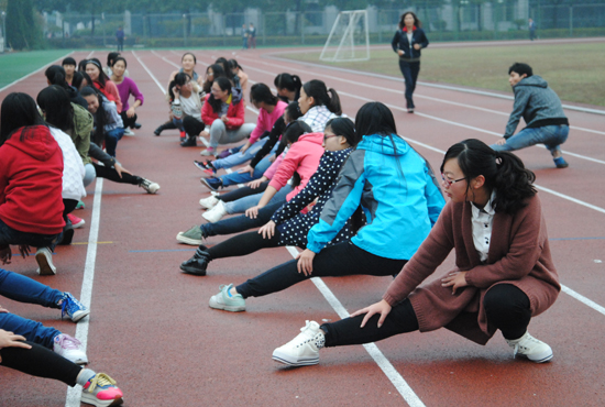 同样的时间,让我们把镜头转向田径场。沐着晨曦,原本宁静的操场已经人声鼎沸,100多名数理学子早已集合在此,随着一声哨响,同学们在院学生会体育部部长的带领下,围绕着操场开始慢跑作热身运动。两圈热身运动后,各晨练小组开始分散活动,有的一起跳起热门神曲《小苹果》,有的开始集体跳绳,也有的进行着各类球类运动......晨练形式丰富多样,一个个充满活力的身影成为清晨校园中的一道靓丽风景线。