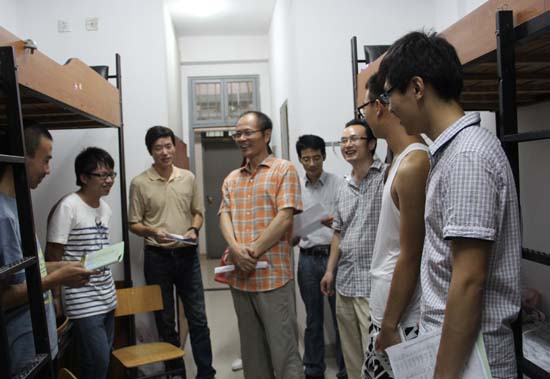 9月11日晚7点,2014级新生报到当晚,在院党委书记王建平教授的率领下,谢志堃副院长、盛宝怀副院长、史正东副书记、新生班班主任和全体辅导员老师等一行逐一走访了黑白直播app