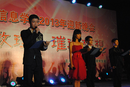 青春,在文理启航;梦想,在这里绽放。“青春数理,璀璨梦想”2013年迎新晚会在第十届全体团学委员的一曲《相亲相爱》中落下了帷幕,迎接我们的是崭新的篇章。
