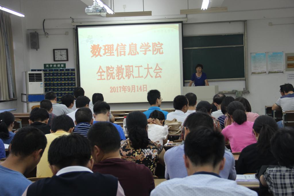 在南山6号楼C207教室召开新学期全院教职工大会,传达学校相关会议精神,总结暑期工作,部署、安排新学期教学、科研、学生等工作。会议由黑白足球直播