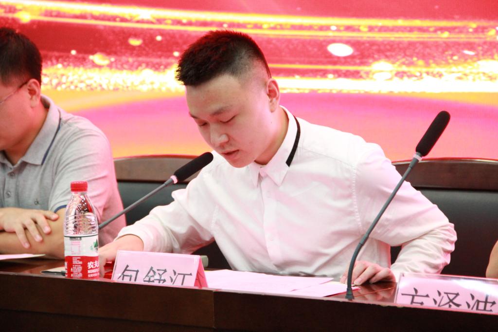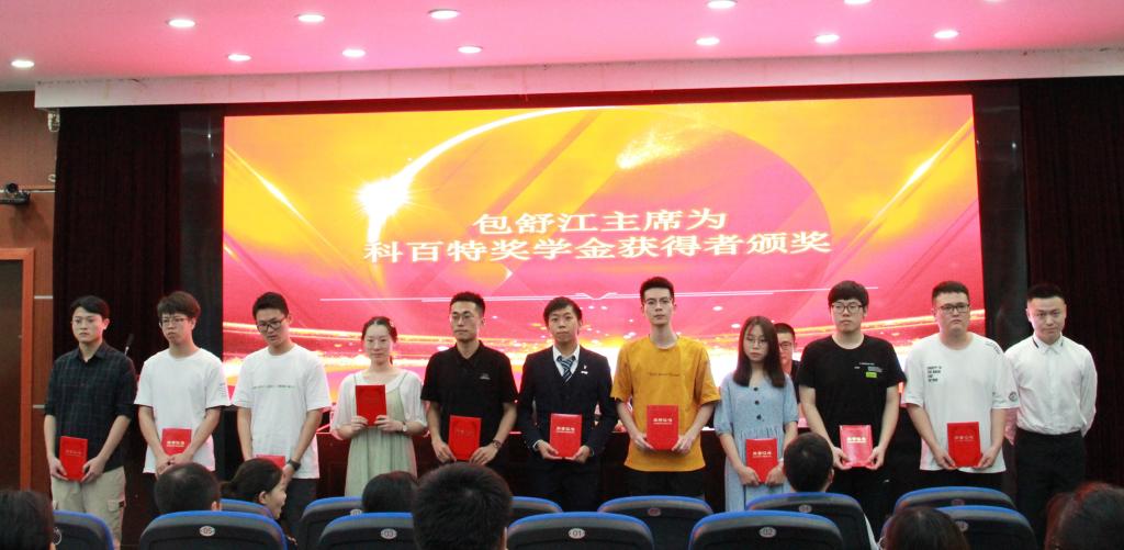党委副书记庞飞宣读了《关于表彰第五届“科百特成才奖学金”获得者的决定》。接下来,杭州科百特过滤器材有限公司包舒江主席为第五届“科百特成才奖学金”一等奖获得者薛珂磊,二等奖获得者严梓峻、吴斌、严晨成,三等奖获得者沈诗婕、唐家豪、胡嘉程、张忠文、申一凡、龚敢这10位获奖同学进行了颁奖。同时,获奖学生代表薛珂磊向包舒江主席赠送了纪念品以示感谢。