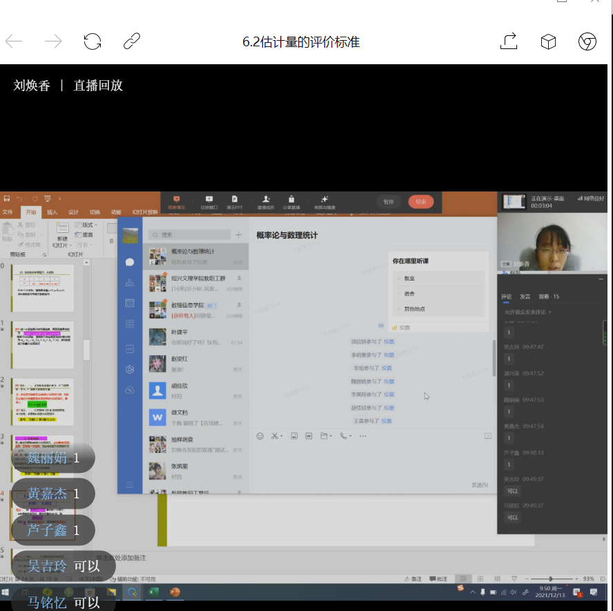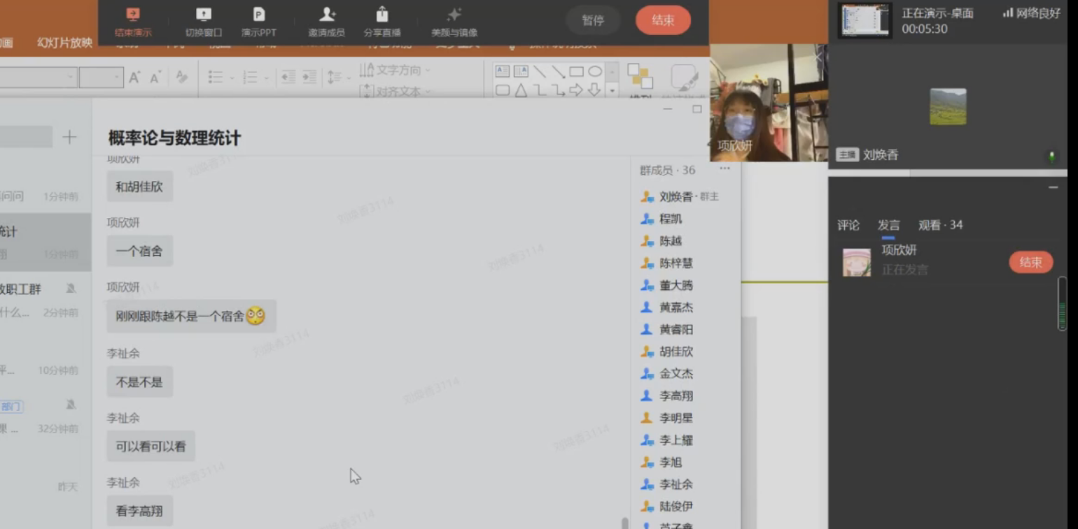 《概率论与数理统计》课程刚好讲到医学检验中的最优分组问题,核酸检测是按照10人一组进行检测,如果混检结果为阴性,说明这10个人检测都是阴性;如果10人混检结果为阳性,则这10个人的采样还需要进一步分别检验,查出具体是哪个样本出现了阳性。提醒同学们要学以致用,科学看待检测结果;并养成及时复习的良好习惯,注重学习内容各部分间的联系,要有整体的科学的发展观。同时提醒学生要配合各项防疫工作,做好个人防护。课间动员学生党员们力所能及地参与到疫情防控中,积极参与志愿者服务活动。