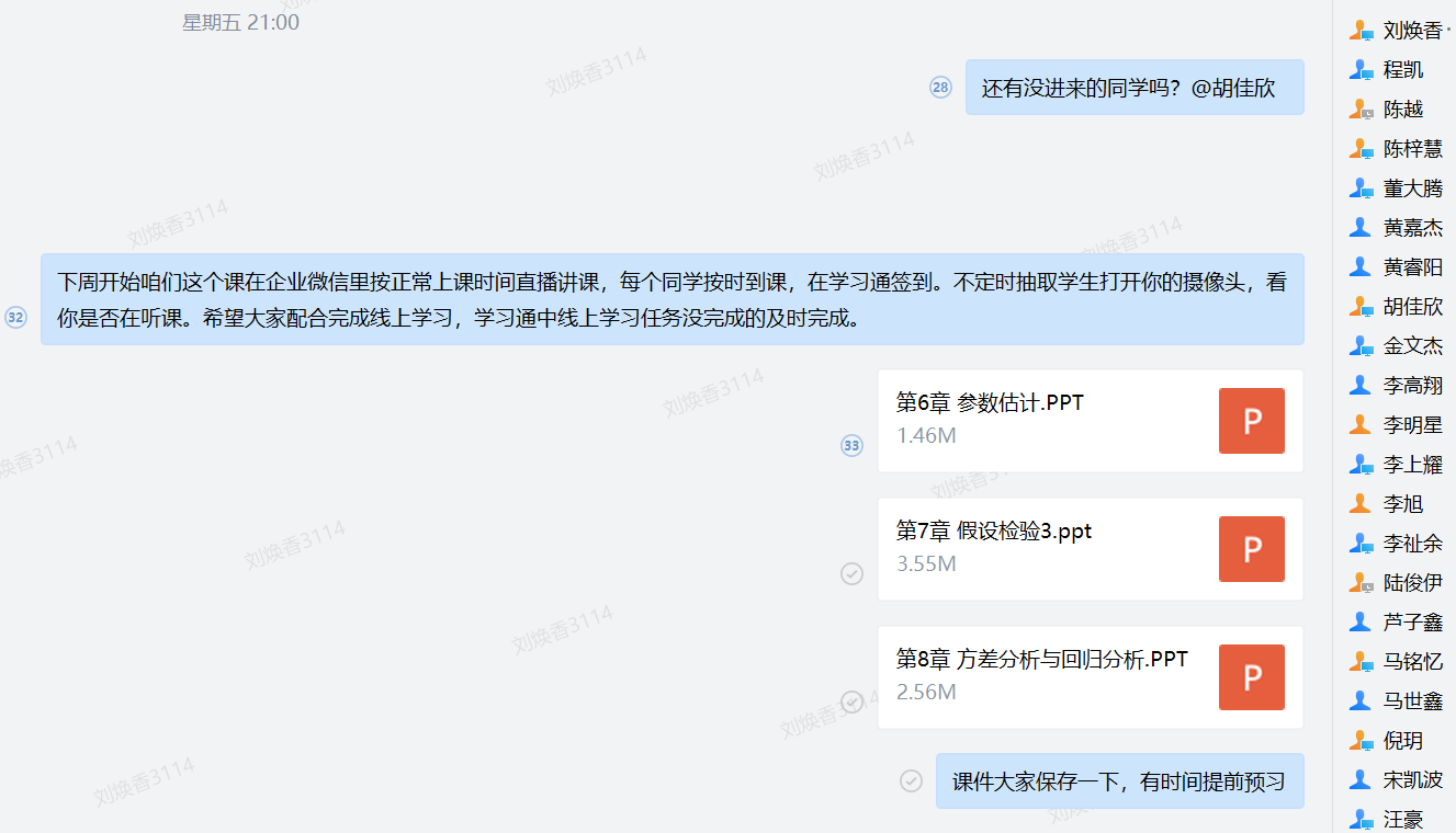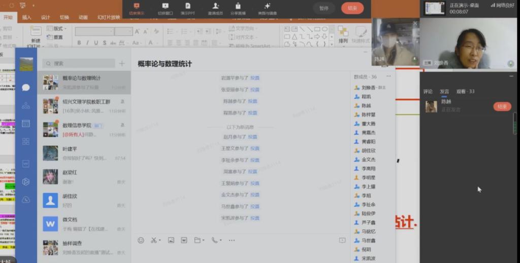 上课之前,我做好相关的准备工作,上传ppt课件方便同学们提前预习,让班委负责通知提醒同学们提前到课,并进行网络测试,对上网课的注意事项给予温馨提醒。如果班内有隔离的同学,在上课前单独做好心理疏导,关注其能否保证线上听课,并在课堂中给予一定的关注。