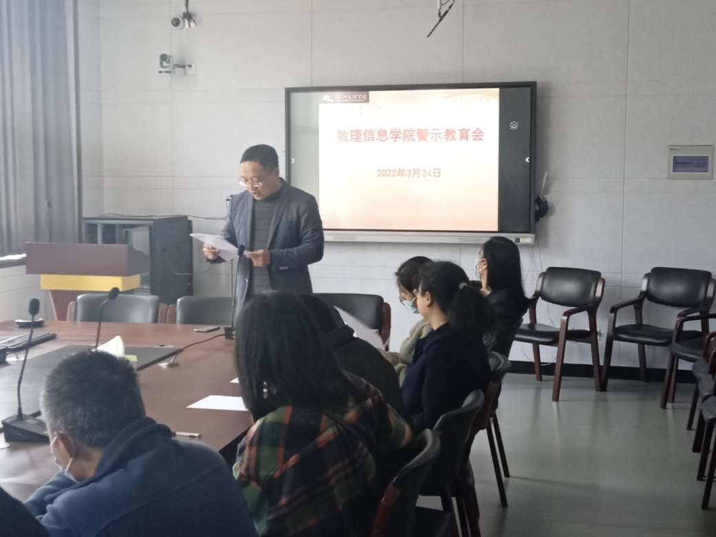 在415会议室召开全院警示教育会。全体教职工参加会议。党委书记周柳萍讲话。党委副书记、纪委书记庞飞做警示教育报告。