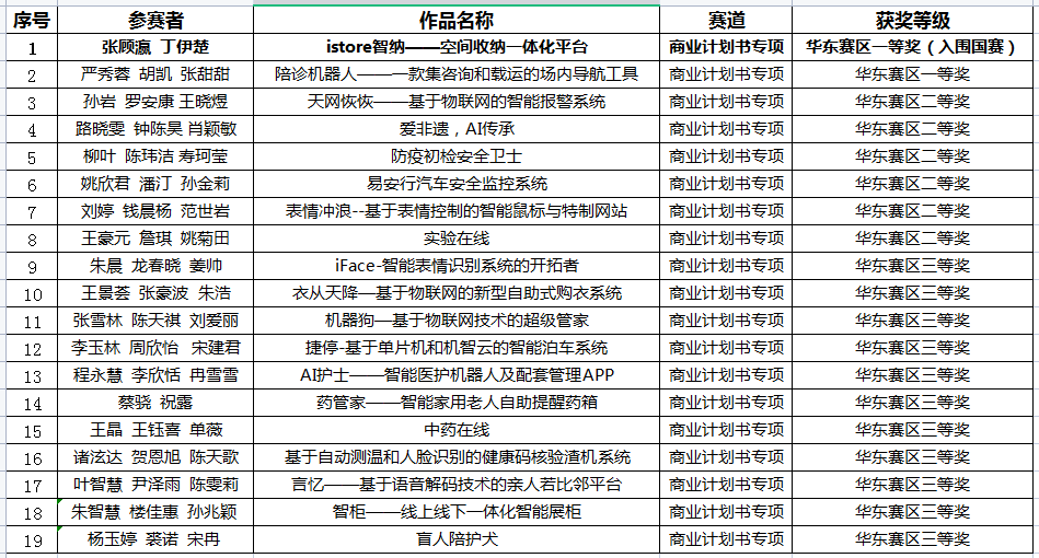 研究生张顾瀛负责的作品“istore智纳——空间收纳一体化平台”成功入围“兆易创新杯”第十七届中国研究生电子设计竞赛全国总决赛。此前,我校共40只队伍参加了华东赛区(技术竞赛、商业计划书专项赛)的角逐,最终32只队伍获奖,其中华东赛区一等奖5项、二等奖7项、三等奖20项。