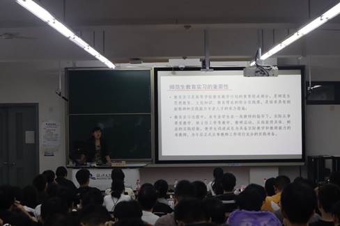 随后,张伟伟老师对于师范生实习要求、时间安排、主要任务进行了详细解读,对实习期间所需完成的实习任务及注意事项进行了说明,要求保质保量地完成此次教育实习,也强调了实习安全的重要性。