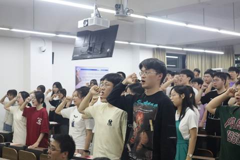 大会的最后,全体实习同学在领誓人数学与应用数学(师范)201班贺恩旭同学的带领下跟读“中小学教师职业道德规范”,全体2020级师范生作了庄严而又神圣的宣誓。相信每位师范生都能带着老师们的殷切期盼,拿出最积极的精神面貌去迎接即将到来的实习生活。