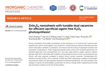 位顺航博士在中科院一区期刊《Inorganic Chemistry Frontiers》发表题为“ZnIn2S4nanosheets with tunable dual vacancies for efficient sacrificial-agent-free H2O2photosynthesis”的研究论文(文章链接//doi.org/10.1039/D4QI02030H)
