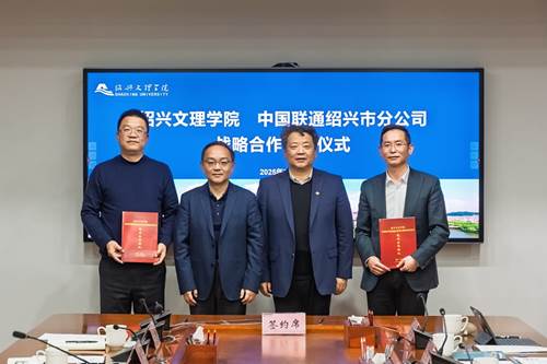 与中国联通绍兴市分公司战略合作签约仪式在行政楼东318会议室举行。中国联通浙江省分公司党委书记、总经理童海波,中国联通绍兴市分公司党委书记、总经理赵结宗,校长赵阳、副校长陈均土出席会议。签约仪式由陈均土主持。