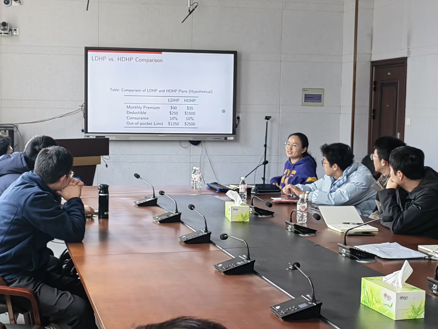 师生携手,共展科研风采。活动共设三场专题报告,应用统计系青年教师李安水博士以“Nonparameteric Estimation of Uncertain Differential Equations”为题,分享其团队在不确定微分方程的非参估计方面的最新成果;随后,其指导的硕士研究王佳佳分享了基于TOU过程的不确定微分方程的参数估计方法;另一组汇报中,周联联博士以“Optimal Health Insurance Design: Mitigating Moral Hazard”为切入点,提出基于准套利(quasi-arbitrage)条件构建的数学模型,以优化健康保险设计。