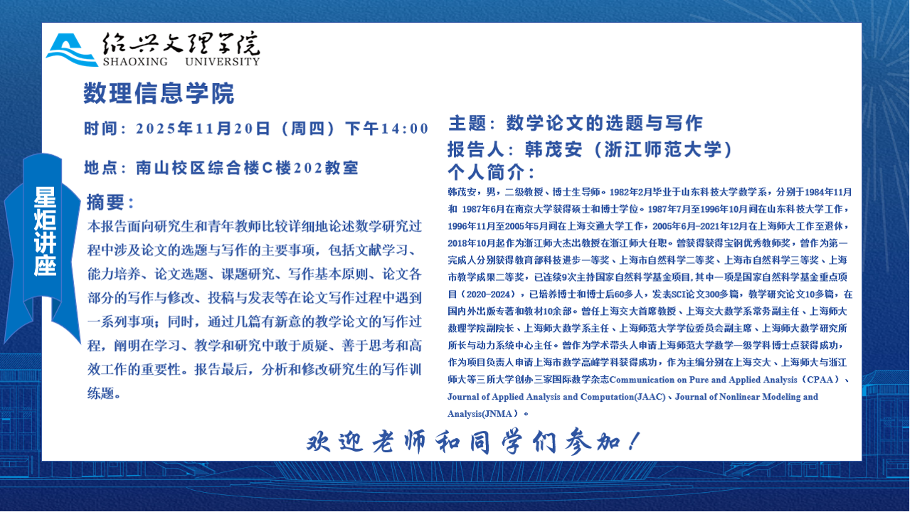 浙江师范大学 韩茂安教授:数学论文的选题与写作
