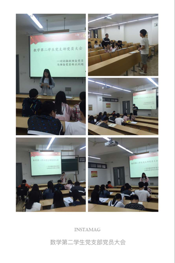 党委预审同意,数学第二学生党支部于5月13日下午4时在南山综合楼A108召开支部大会,讨论了褚惠娜等三名预备党员转正问题以及曾志远等三名发展对象入党问题。支部书记施高慧主持本次支部大会。
