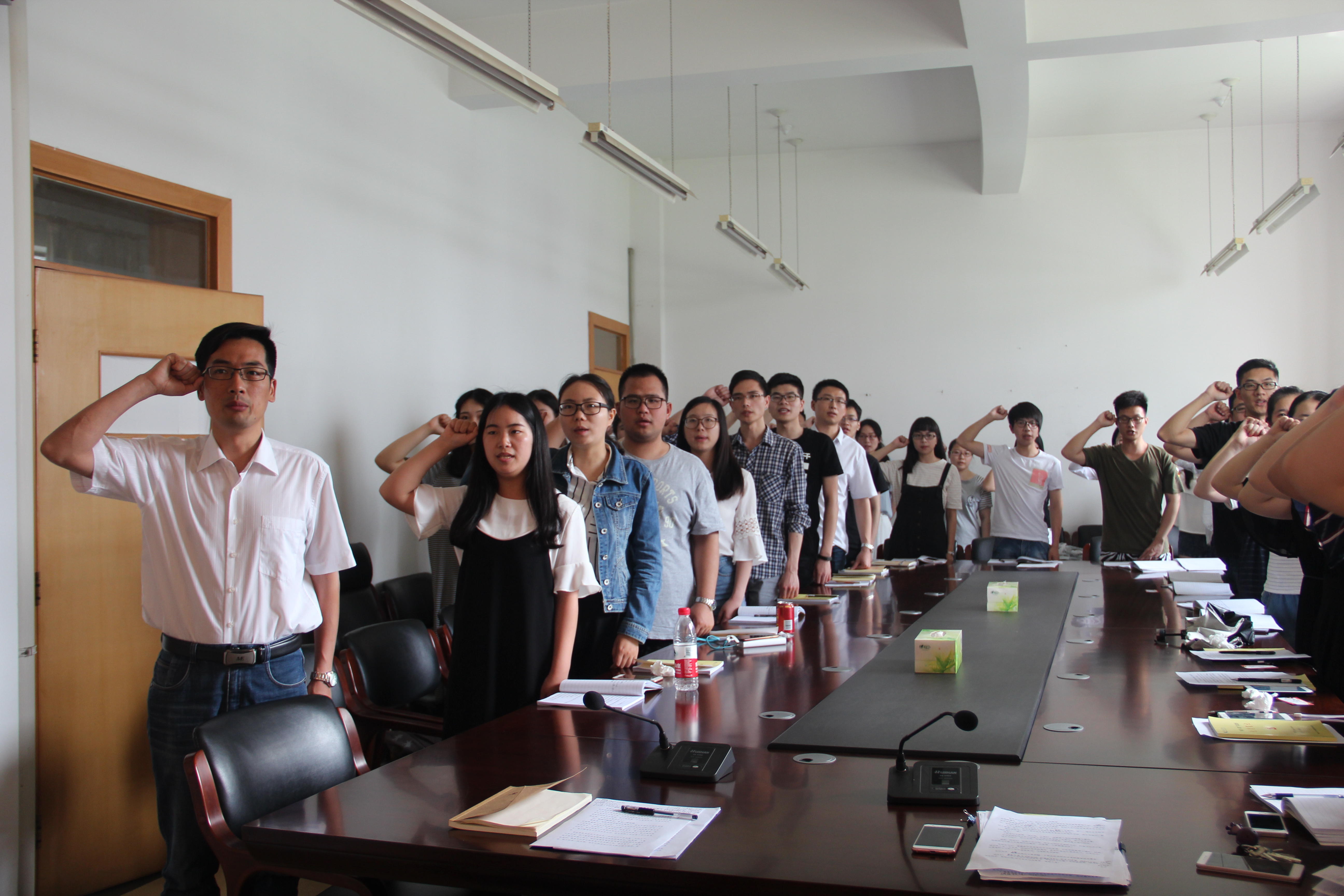大会在激昂的《国际歌》声中开始。全体党员起立,举起紧握的右拳,在姜杨杨同志的带领下,面向党旗庄严宣誓,重温入党誓词,表达爱党、护党、为党的坚定决心。