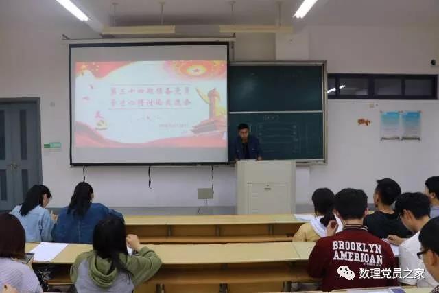 经过热烈讨论后,每组各派出了一位代表进行发言。首先是来自电信161班的吴斌,他对十九大精神进行了深刻的阐述与理解,同时表示了作为一名预备党员要树立起学生党员的先进形象,努力成为同学的模范。第二位是来自电信152的吕帮通,他认为要将十九大精神学习与自身实际相结合,切实贯彻党的十九大精神。来自物理141的王翔紧紧抓住了“不忘初心”、“牢记使命”这两个关键词,阐述了自己对十九大精神的理解。而来自数学161班的宋莹然为我们展现了作为一个预备党员应当如何践行新时代中国特色社会主义思想,回答了如何做,做什么的问题。在7位代表发言后,数学151的叶晨又从围绕大家应当“做什么”和“如何做”补充了三点意见。