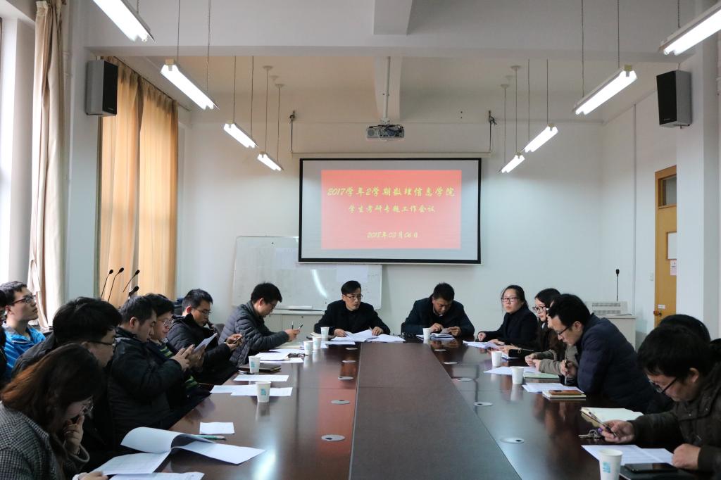 党委副书记史正东主持,主要针对2014级考研复试和2015级考研工作进行了相关部署。
