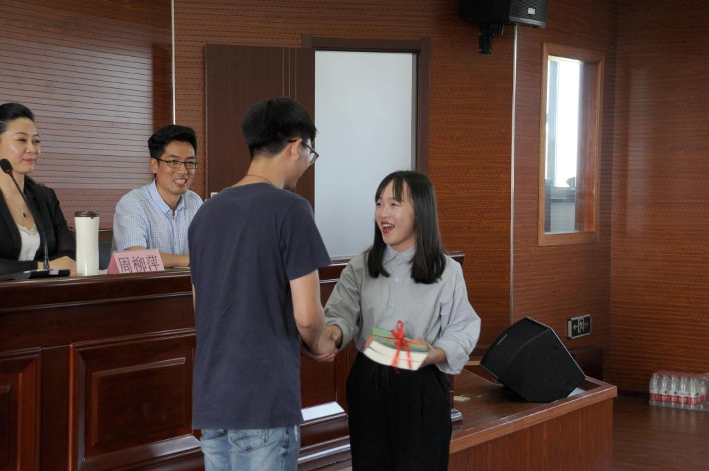 的培养表达了内心真挚的感恩之情,也提及了自身的建议,希望同学们能够重新审视自己,努力克服困难,勇于创新,保持理想,完善人格。其中程康桥同学分享了奋斗、勇气和收获才能考上985高校,朱斌达同学分享了大学四年取得校级省级国家级奖项和荣誉称号历程直到考取研究生,马蓉则代表2015级考研学子做了坚持到底、不负青春、不负期望的表态。而专程从杭州赶来的张依更是分享了她对感恩的定义和她的研究生生活。她表示,科研路上非常精彩,但不轻松,获取知识的过程是非常快乐的。同时也希望即将备战考研的同学们好好珍惜这一年宝贵的时光。