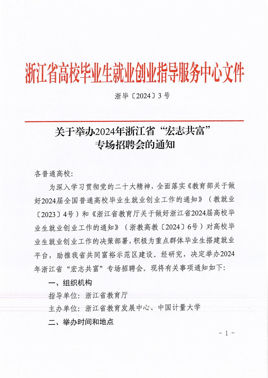 关于举办2024年浙江省“宏志共富专场招聘会的通知
