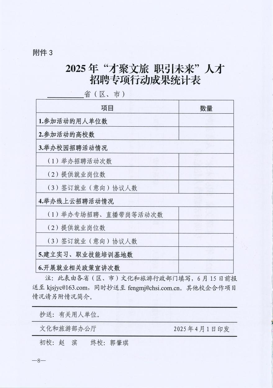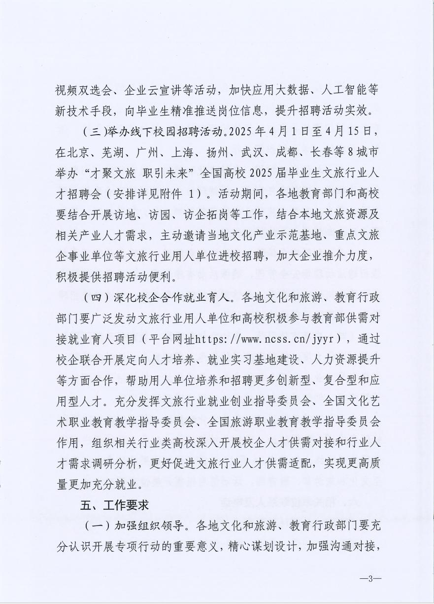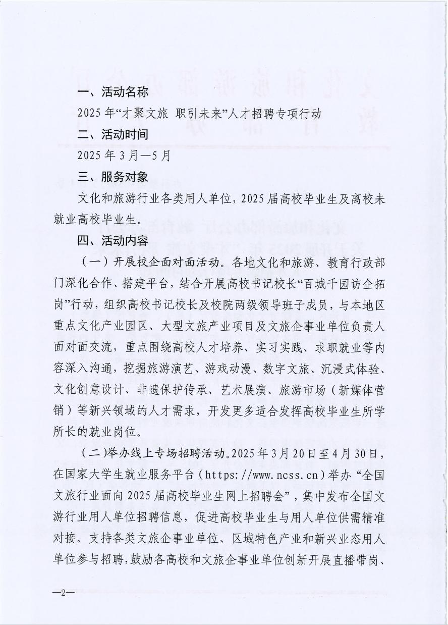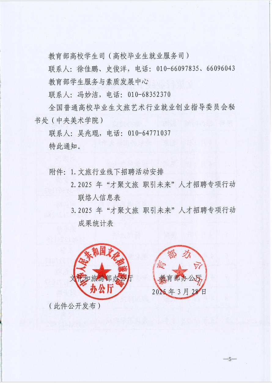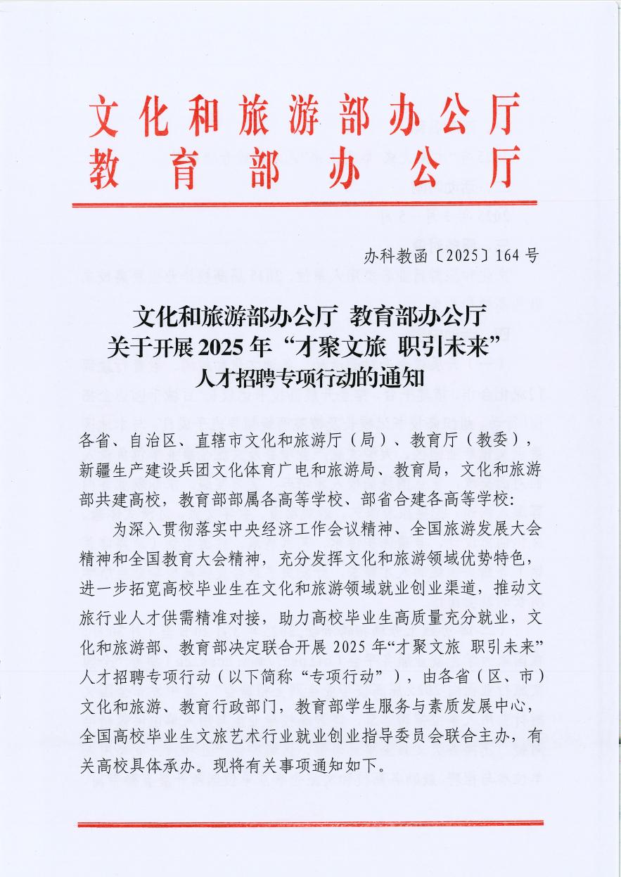 文化和旅游部办公厅 教育部办公厅关于开展2025年“才聚文旅 职引未来”人才招聘专项行动的通知(办科教函〔2025〕164号)