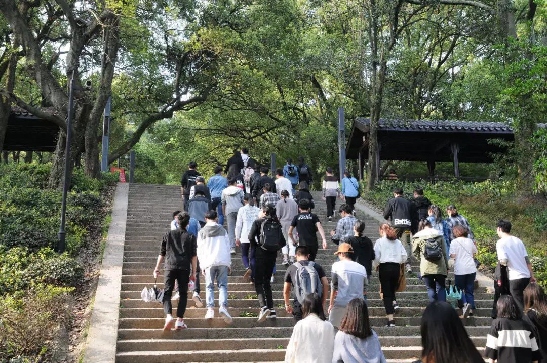 | 全体学生会干部和志愿者步行至府山公园南大门,由青协带队,行进至烈士纪念碑。 |