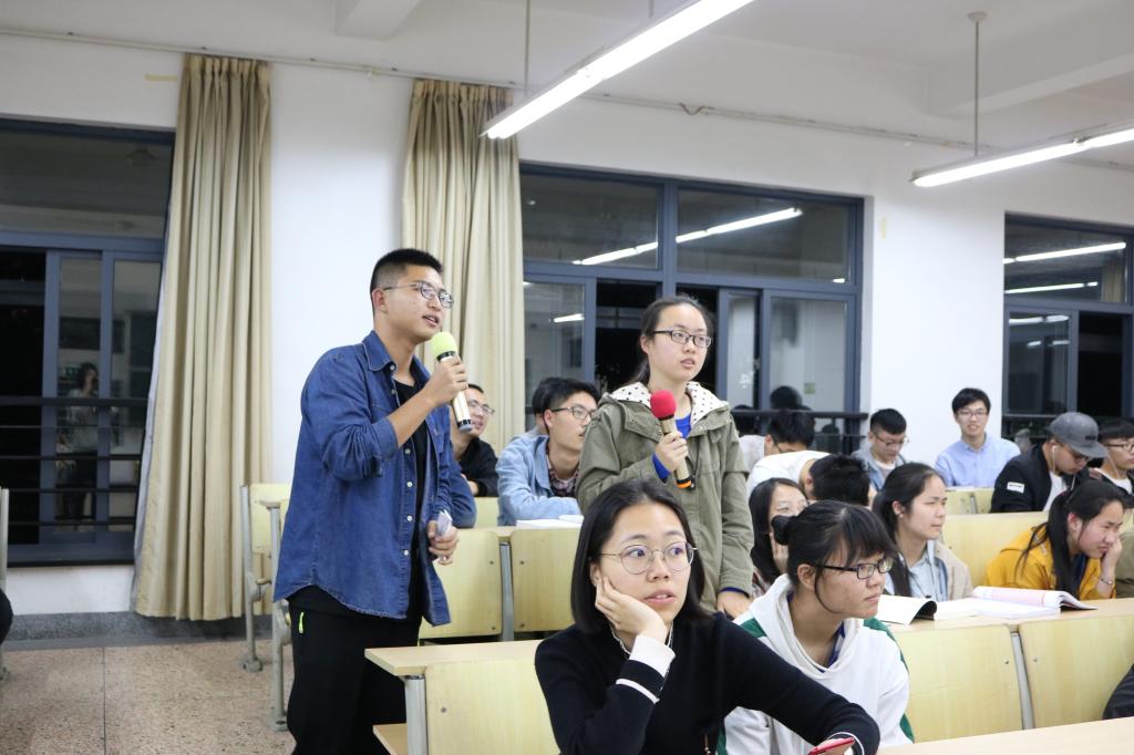 随后两位担任科研项目负责人的学长以ppt展示的方式陈述了自己团队的科研立项,物理161的沈珏团队的项目名称为“黑洞的量子隧穿效应以及相关黑洞量子研究性质”,他们的科研以理论为主,目的是通过探索了解广袤无穷的宇宙的奥妙。物理151朱希同学的项目则更贴近生活,他们的项目名称是“SnSe基半导体热电材料的分子束外延生长”。热电材料在我们生活中的应用已经十分广泛,而他们的研究对热电材料的进一步推广有十分重要的意义。两位同学的介绍让观众了解有关科研方面的知识,让同学们对科研有了十分直观的认识,也鼓舞了更多的同学加入到科研立项的行列之中。
