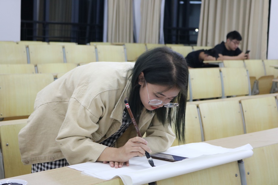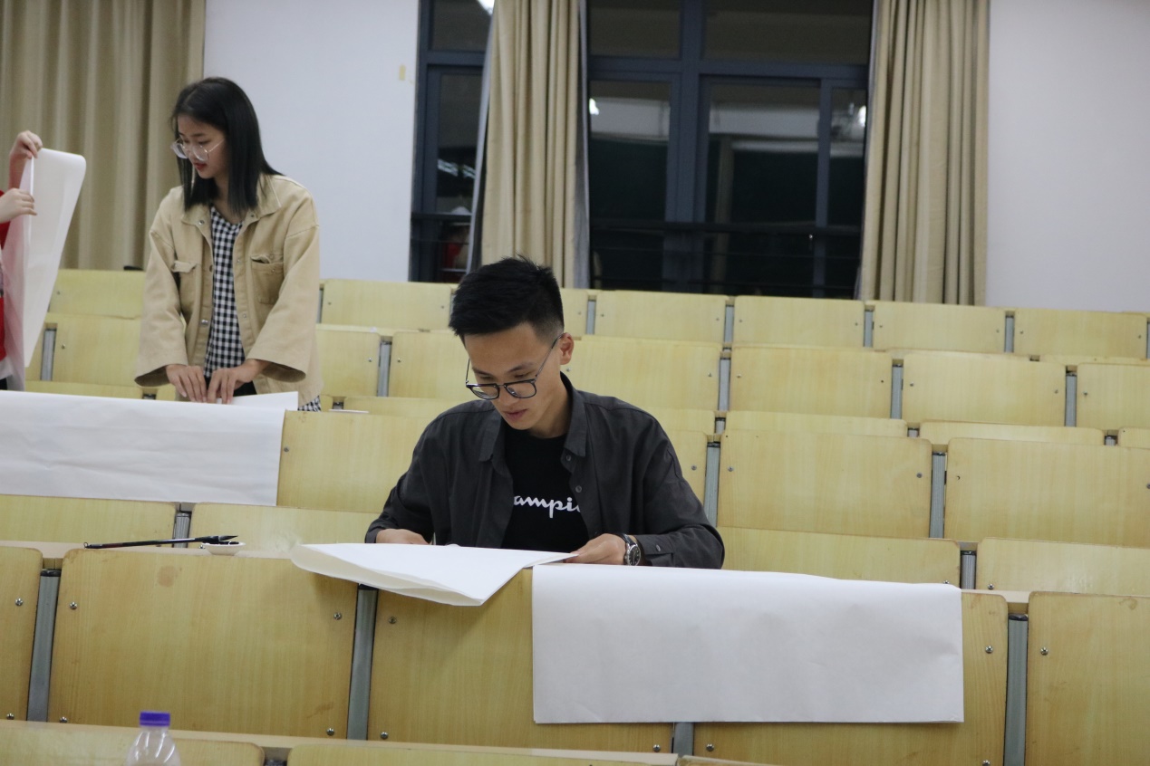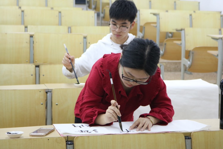 其中软笔比赛采取了现场书写的方式,让同学们在教室中激烈的进行比拼,硬笔比赛则是通过线下的同学们积极上交作品的方式来进行逐一评比。接下来就是关于软笔书法比赛的一些精彩照片:
