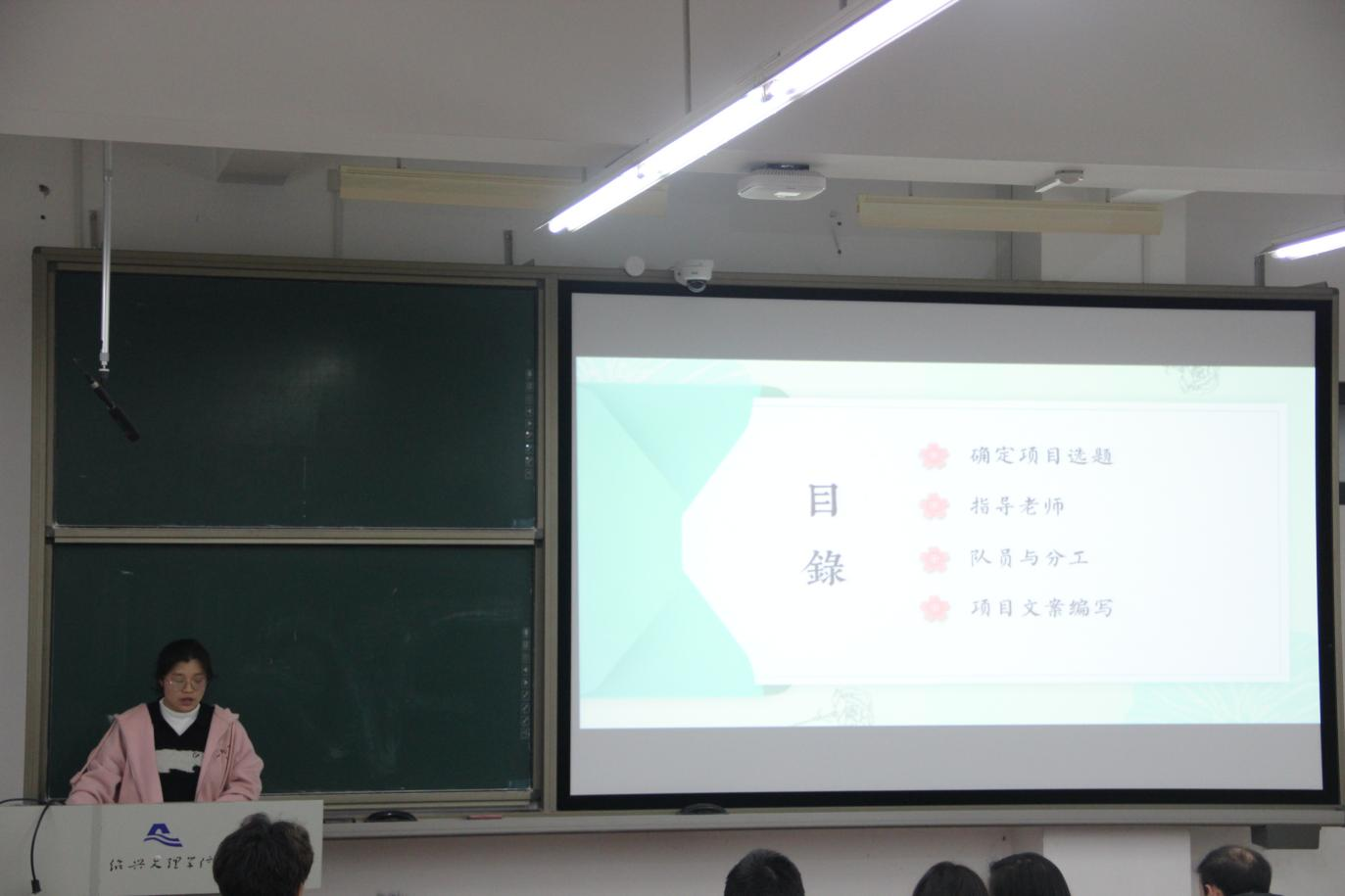 前几年成功立项的选题,观察特点,总结规律。在确定大致方向后,尽可能多的查看相关资料论文,可以对资料内容进行梳理。除此之外她也鼓励大家有问题多问老师,以及找到合适的队友。最后她细致地分享了关于申报书的撰写工作。