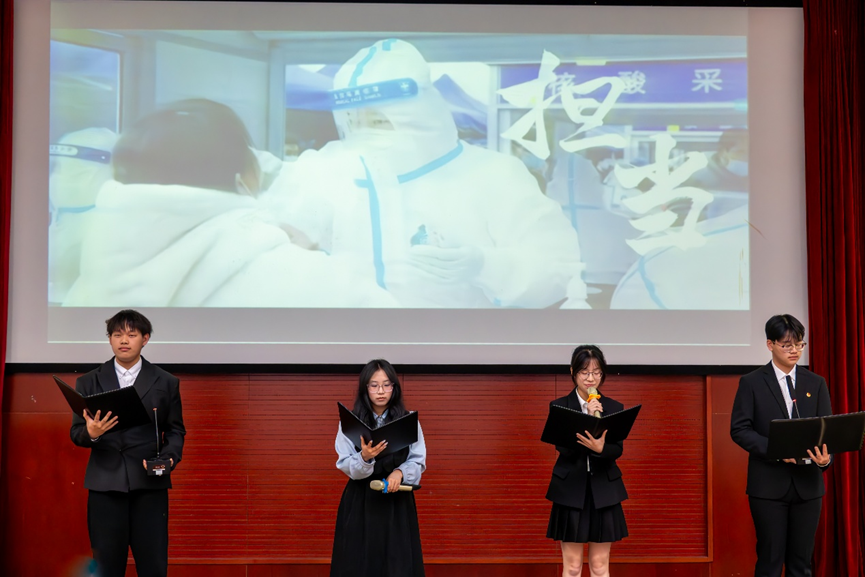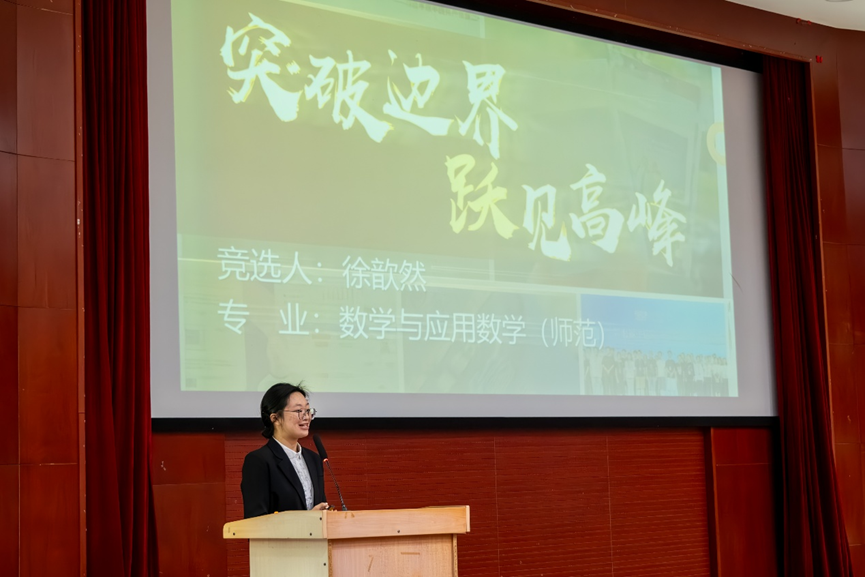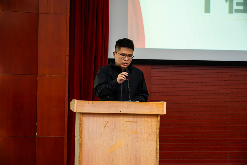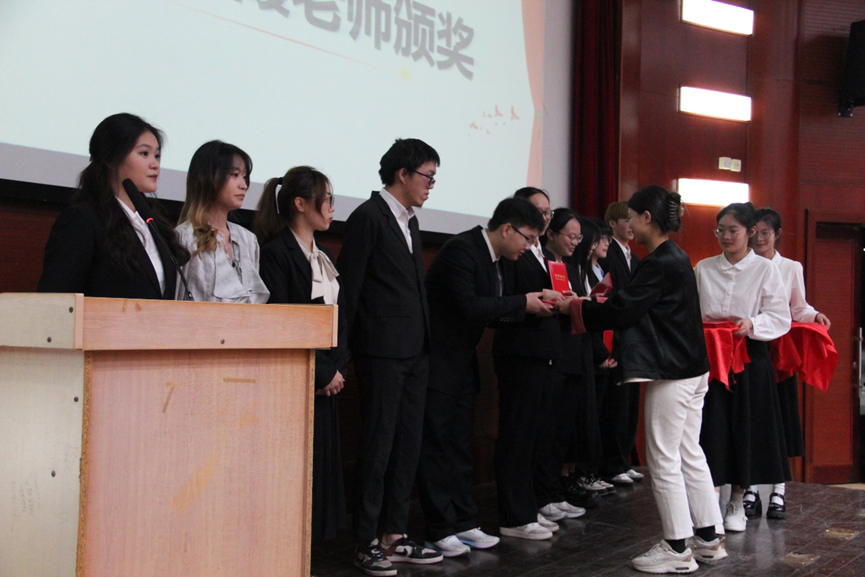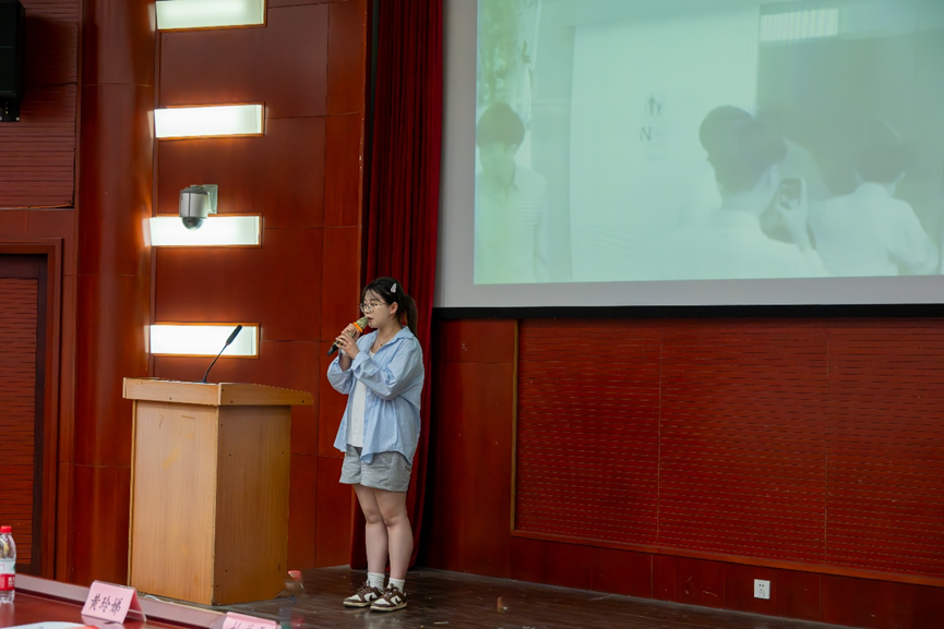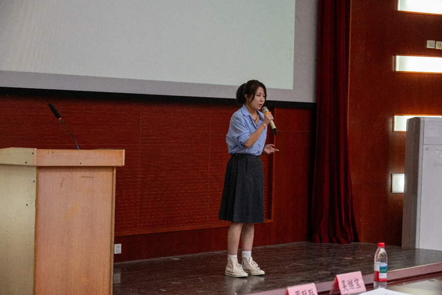 最高荣誉,郑老师指出评选不仅是对过往成绩的展示,更关乎同学们对未来大学生活的规划与进取决心。为此,她向在场同学提出三点建议:一是鼓励跨界融合,在专业学习中积极探索跨学科领域,培养多元思维,拓宽知识边界;二是倡导肩负社会责任,主动投身社会实践,关注社会热点,实现个人与社会价值的统一;三是呼吁保持创新精神,勇于突破传统思维,在学术和个人发展中追求卓越。最后,郑老师向同学们送上学业进步、健康成长的祝福,也祝愿老师们工作顺遂、家庭美满。