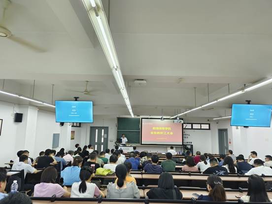在南山校区6号楼A406教室召开新学期全院教职工大会暨本科教育教学审核评估工作部署会,传达学校相关会议精神,黑白足球直播